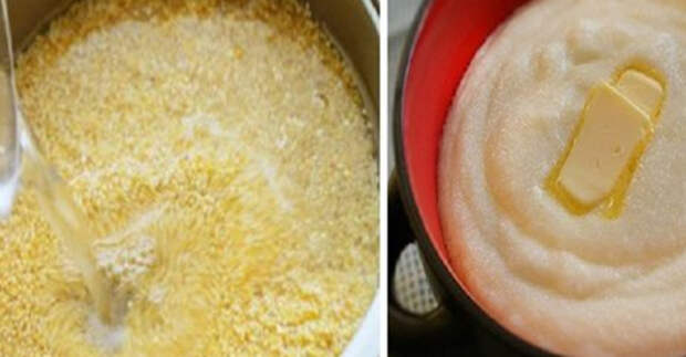 Очень вкусной получится кукурузная каша, приготовленная в духовке! Возьми 2,5 ст. кипятка и 1 ст. крупы. Промой крупу и залей ее кипятком, добавь соль, сахар, изюм, накрой крышкой и отправь в разогретую до 180 градусов духовку на 40 минут. Обалденная каша получается!